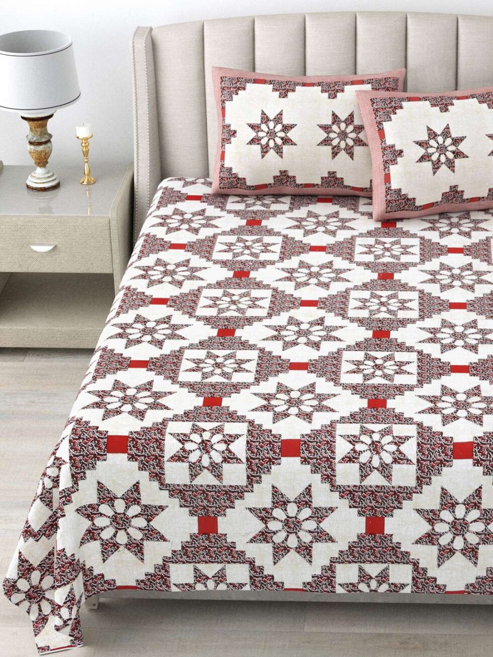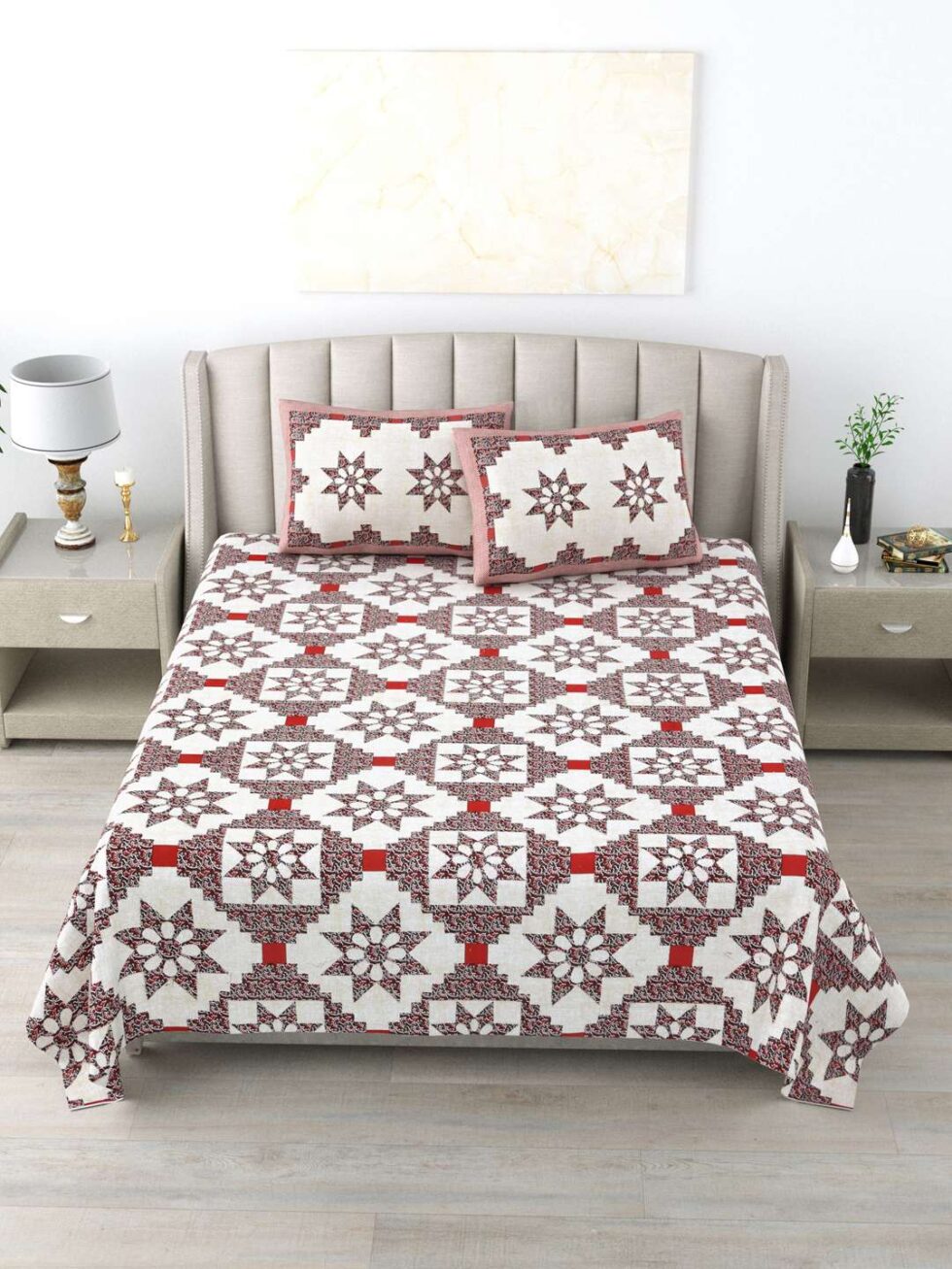 100% Pure Cotton Traditional Printed Bedsheet for Double Bed King Size Bedsheet with 2 Pillow Covers